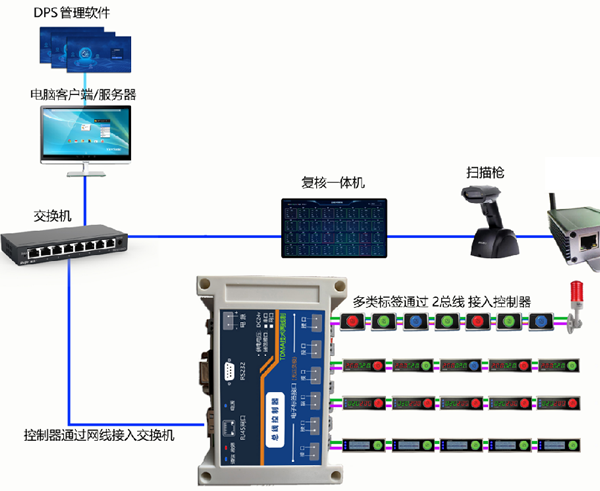 它借助亮燈電子標簽,由電子標簽顯示作為輔助工具,引導揀貨人員進行揀選